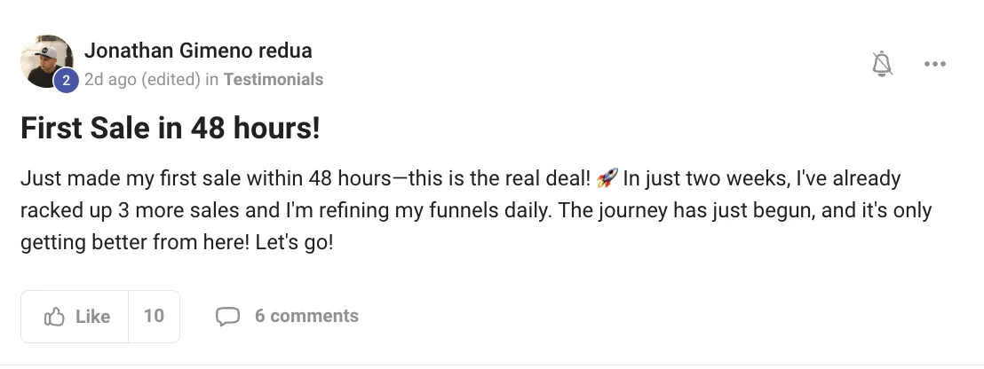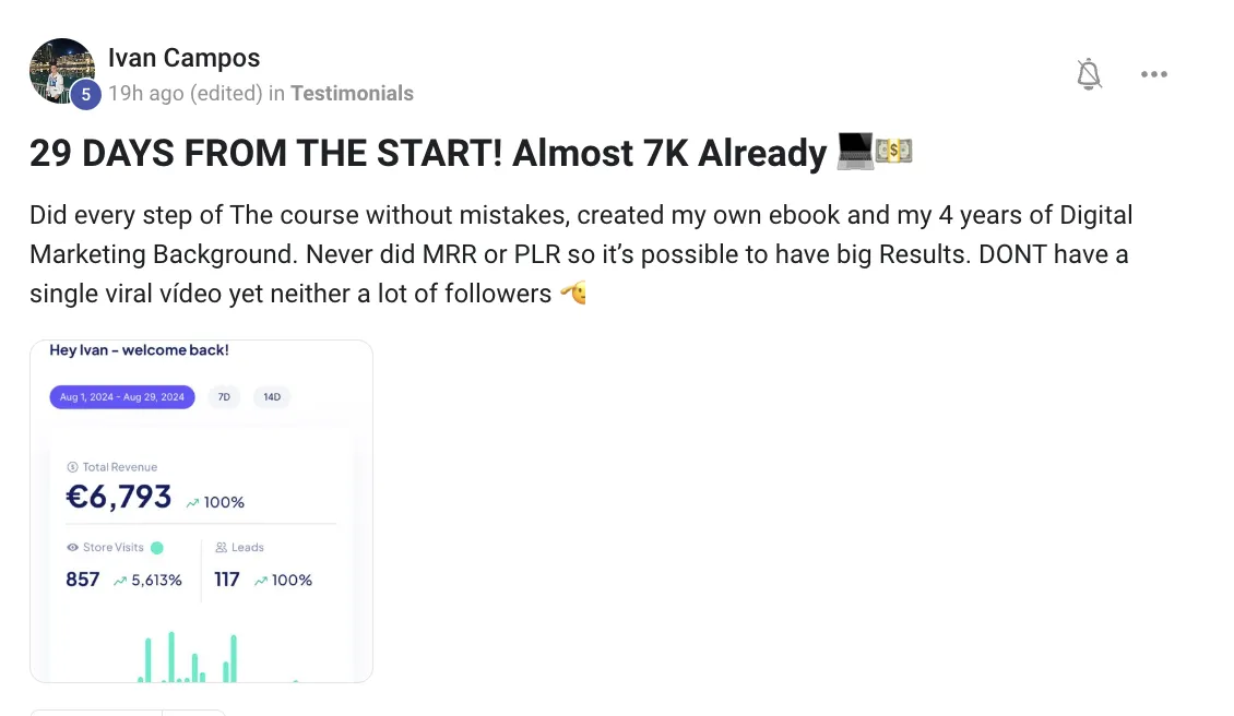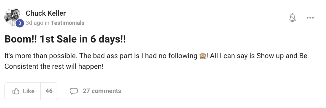 This course actually comes with its own community of 20,000+ people where you can ask questions & network. In addition to that, if you get the course with me, you will be added into my PRIVATE CHANNEL youll receive my personal phone number & an optional group chat with weekly calls! I want to see you become a success story!